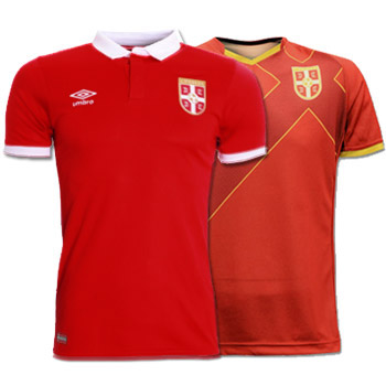 Komplet od dva crvena dresa Srbije - iz prethodnog i aktuelnog ciklusa kvalifikacije za prvenstvo 2018. u Moskvi.